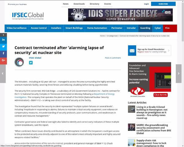 IFSEC Global • 4th October 2012 Contract terminated after ‘alarming lapse of security’ info4security.com