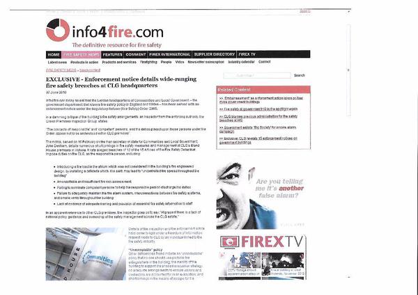 IFSEC Global • 7th June 2010 EXCLUSIVE – Wide-ranging fire safety breaches at goverment headquarters info4fire.com